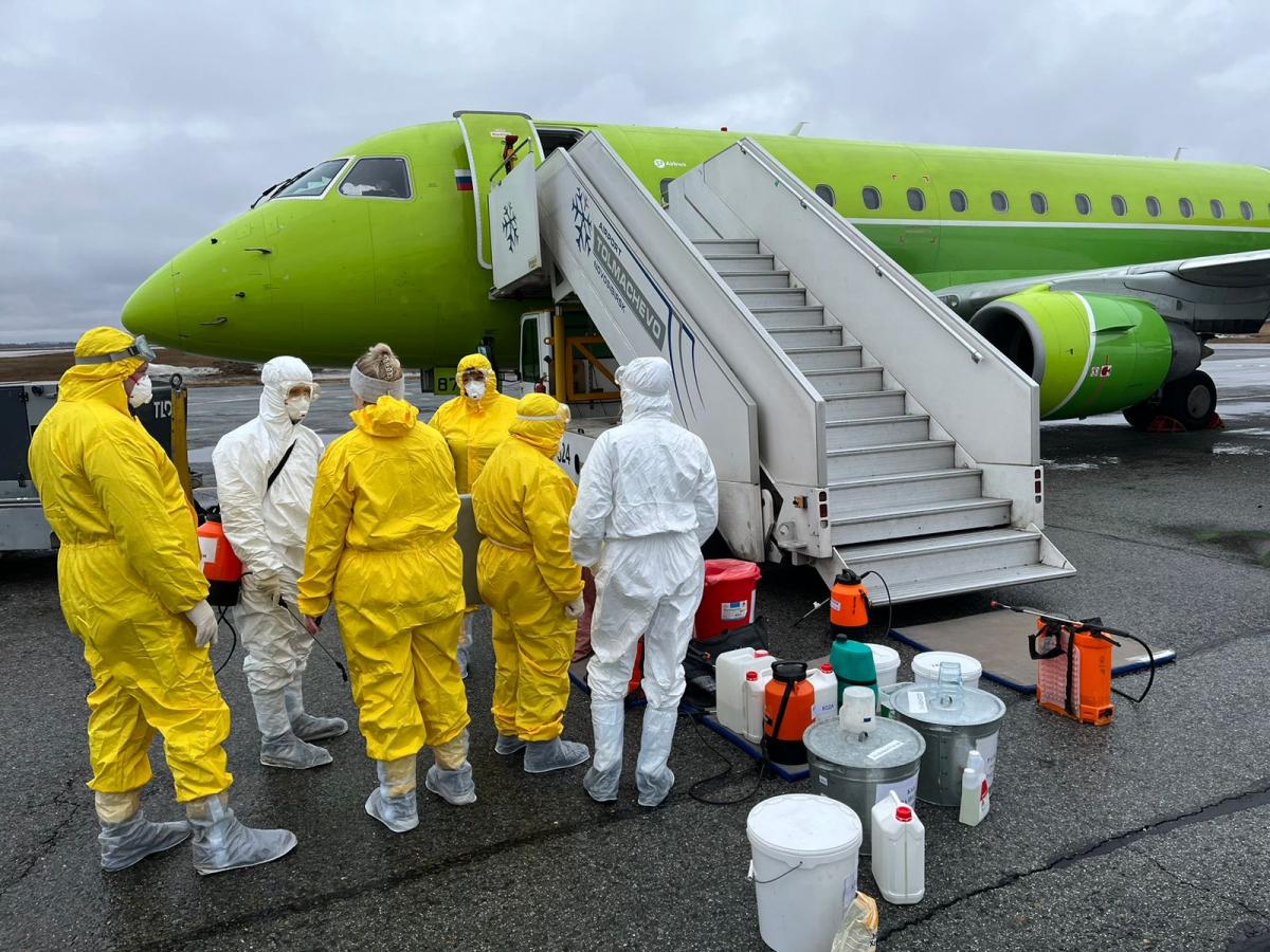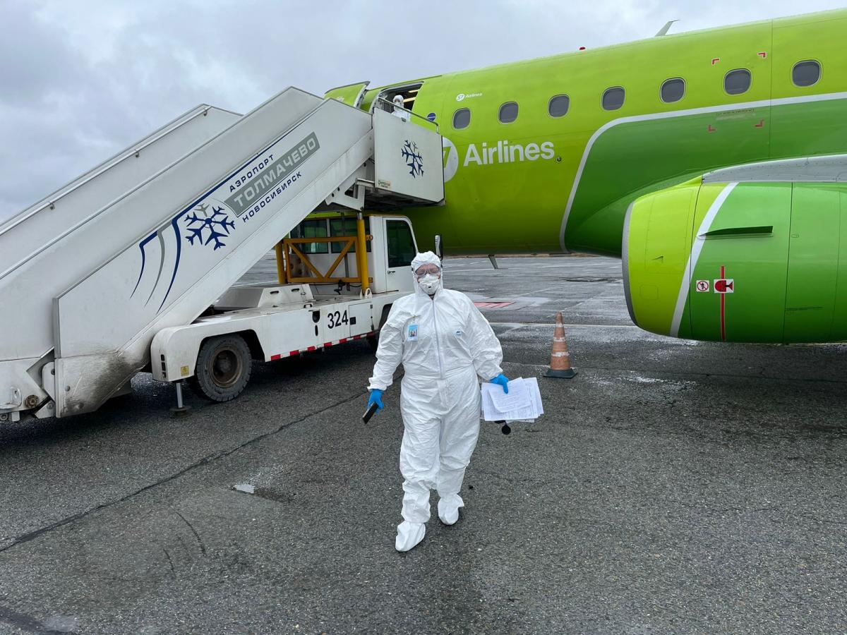 Бригада дезинфекторов ФБУЗ «Центр гигиены и эпидемиологии в Новосибирской области» провела дезинфекционную обработку воздушного судна, транспортных средств, ручной клади и багажа.